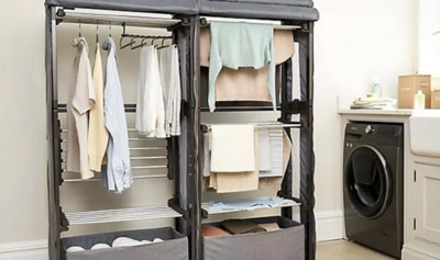 Not only does it have these highly sought-after features, but it can also hold up to 30kg of washing, has a digital display and a remote control and timer function, and it comes with a cover and two laundry baskets. If energy bills are a concern, this heated airer saves energy as the brand worked out that the top shelf doesn't need to be heated at all to dry clothes.